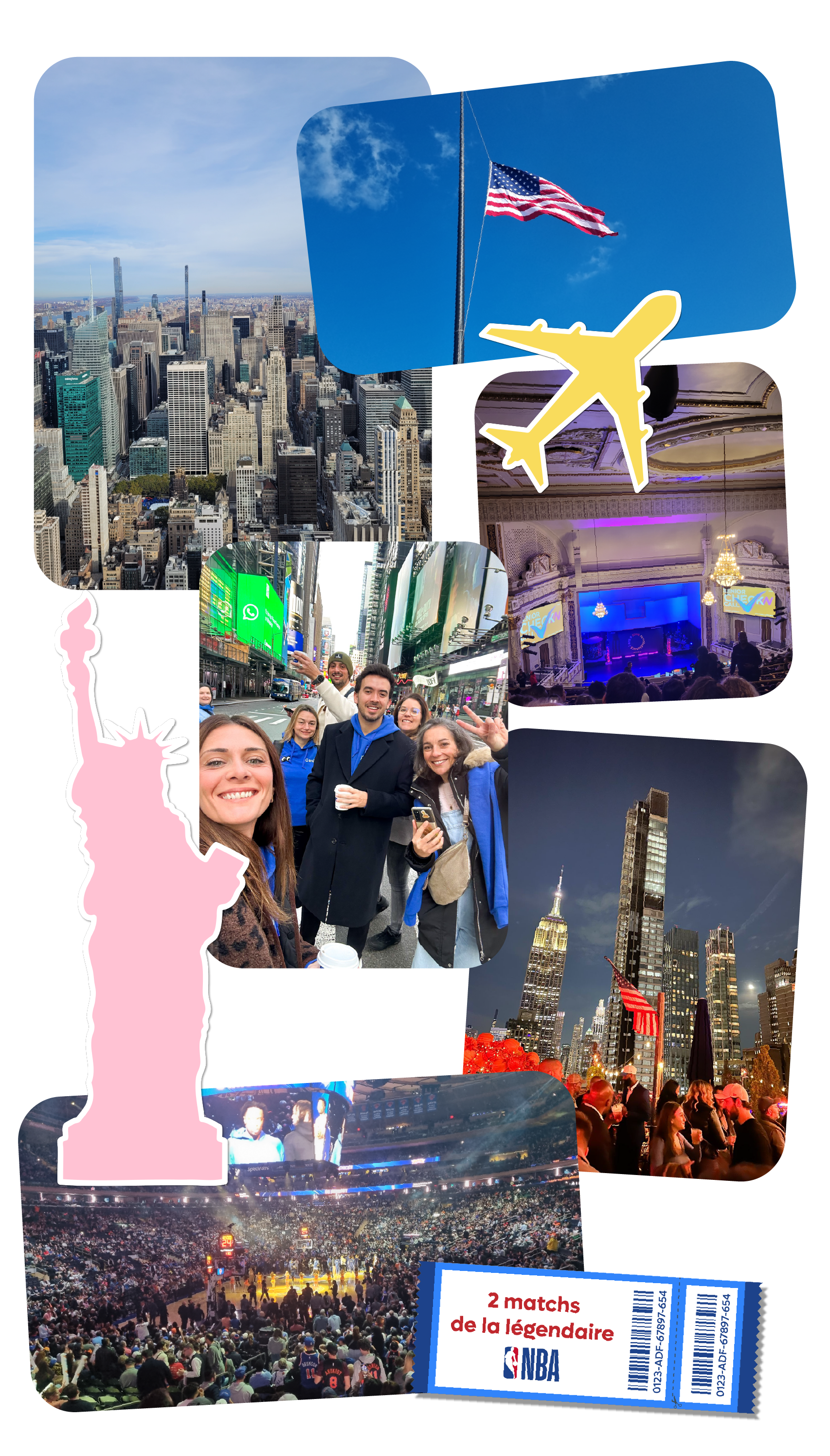 | Immersion totale dans l’ambiance électrique de 2 matchs NBA : musique, show, supporters… un spectacle grandiose à l’américaine !Mamma Mia! : l’incontournable de Broadway Ils ont également assisté à la célèbre comédie musicale Mamma Mia!: un moment magique rythmé par les plus grands classiques d’ABBA.Balade apaisante à Central Park Pause nature au milieu de Manhattan : l’occasion de profiter d’un bol d’air frais dans l’un des parcs les plus célèbres au monde.Vibrer au rythme de Times Square Entre jeux de lumière, foule et énergie débordante, Times Square a offert une immersion totale dans l’effervescence new-yorkaise. |